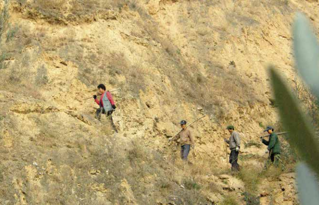 上世紀(jì)90年代,李慧(左一)帶領(lǐng)當(dāng)?shù)厝罕娫诟拭C省隴南市武都區(qū)佛堂溝一帶栽種油橄欖。