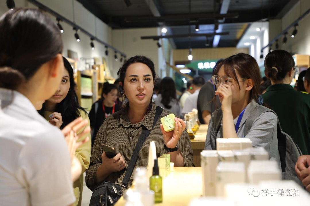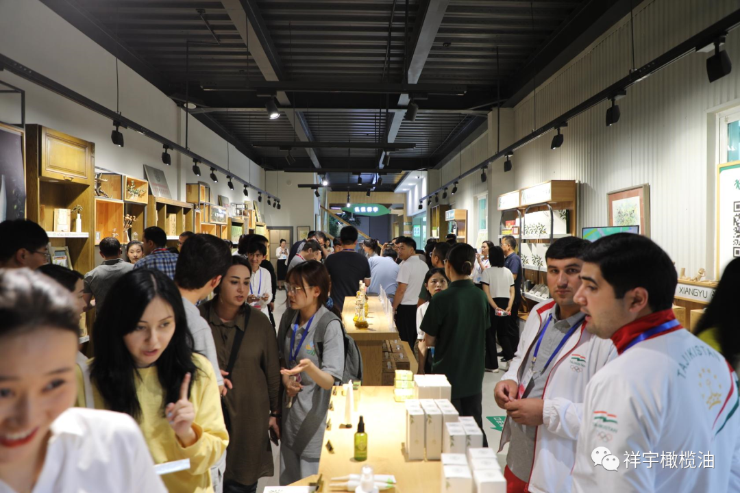 中亞五國(guó)青年代表駐足產(chǎn)品體驗(yàn)區(qū)品嘗橄欖美食,